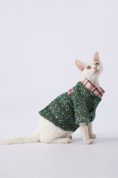 CHRISTMAS Series Bornown Emerald Tweed Button Dog Jacket – Winter Heritage Holiday Coat
