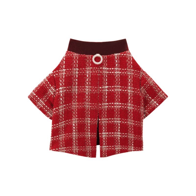 CHRISTMAS Series Bornown Red Plaid Tweed Dog Dress with Velvet Bow – Christmas Pet Outfit