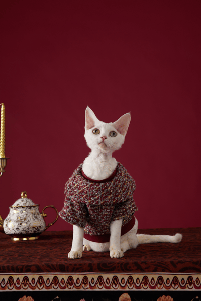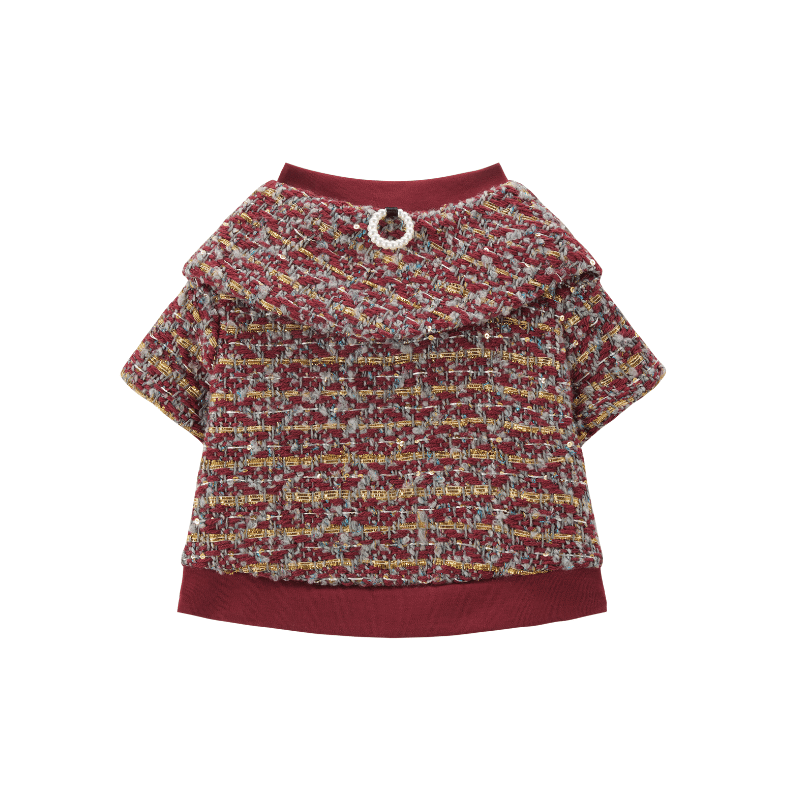 CHRISTMAS Series Bornown Wine Red Layered Tweed Dog Top Festive Luxury Christmas Outfit